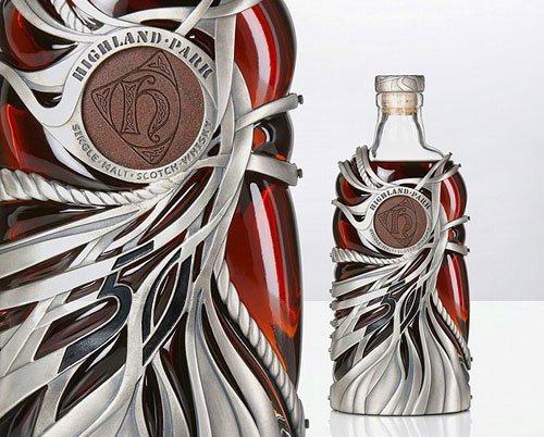 纽约珠宝商MaeVona旗下知名设计师Maeve Gillies受托为奥克尼群岛历时最久的威士忌设计酒瓶,以标准纯银精心刻划高原骑士50年苏格兰威士忌瓶身,限量275瓶,售价10500元英镑。