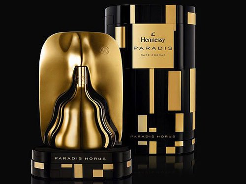 这款全身裹上18 K 金的轩尼诗杯末停限量酒款为义大利设计师Ferruccio Laviani亲手打造,外观犹如熊熊烈火,象征埃及太阳神Horus的尊贵辉煌,另外搭配沉黑与金黄相间的外包装,内含酒液调和上百种罕见白兰地,均陈酿25至130年不等,售价1400欧元。