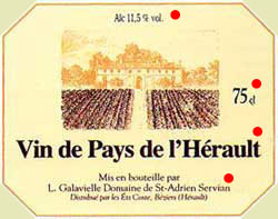 ——酒瓶标签标示为 Vin de Pays + 产区名