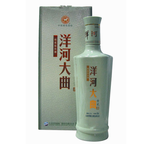 现产于江苏省泗阳县洋河镇洋河酒厂。清初已闻名于世。 “闻香下马,知味停车;酒味冲天,飞鸟闻香化凤;糟粕入水,游鱼得味成龙;福泉酒海清香美,味占江南第一家。洋河大曲酒度分64度和62度和55度。酒液无色透明,醇香浓郁,余味爽净,回味悠长,是浓香型大曲酒,有“色、香、鲜、浓、醇”的独特风格。