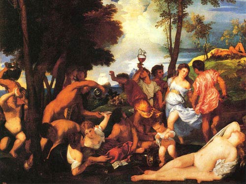提香-韦切利奥(Tiziano Vecellio)的《安德罗斯河边的酒神狂欢节》