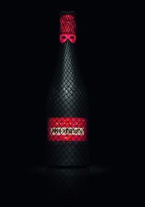 设计师采用了新型材料——黑色乳胶与网袜材质,将白雪海瑟克香槟蕴含的“性感”魅力再次升华。出众姿态带来气泡鲜活与果香馥郁的香槟滋味,与唇红色完美相衬的烟熏黑色,实现画龙点睛的效果,如巨星华服、好莱坞的媚眼妆与电影女星的手套。性感的 “网袜”下,象征激情的红色魅力标签若隐若现,给人难以抵挡的魅力诱惑。正如设计师Jean Paul Gaultier自己诠释的那样:“黑色丝网掩映下的是性感的人体。它象征着巴黎女性诱人的一面,同时也让人想到“巴黎人的悠闲”和“巴黎康康舞”,红色面具增加了神秘和热烈感。