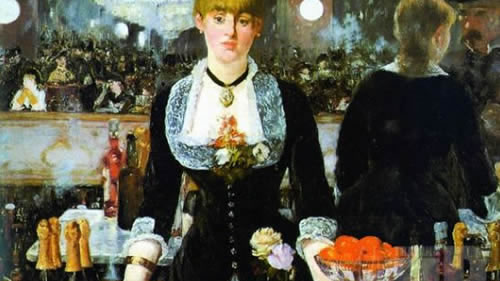 这是法国著名画家爱德华·马奈生前最后一幅作品——《福利·贝热尔的吧台》,这幅画所展示出的古典高贵气质和华丽美艳的印象派色彩,不仅成为他生命交响乐的辉煌结尾,也令其荣获“荣誉团勋章”。