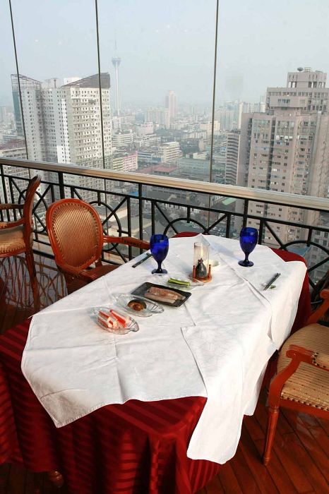 透过全透明落地窗放眼望去,点点灯光和满天星斗,这个繁华的海上不夜城刚刚掀开热闹非凡的夜生活。人民公园、南京路步行街、上海美术馆、上海大剧院以及黄浦江和外滩的景色缓缓地从眼皮底下掠过,遥远而又触手可及。