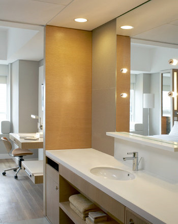 香港设计师特别懂得在方寸内大做文章,这种精明的香港生活哲学,也是一种全球通用的风格,皆因楼价越来越贵,一寸空间一寸金,自然不能浪费。设计师打破了一贯酒店传统浴室三件套的做法,把厕所、淋浴间和洗手盘分开,那是考虑到入住的两个客人,能在同一时间使用不同的空间,早上就不用展开你争我夺的战争,善用就不会造成不必要的浪费。设计,不单只是为了讨好眼睛的喧哗取宠,其实更应该是一种改善人类生活的创意。近年来,精品酒店泛滥成灾,酒店房间正如设计,不切实际的装置只会浪费地球资源,甚至给旅人造成负担。