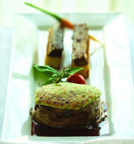 秘制“夏洛特”羊腿配酱味茄条及苹果醋羊汁