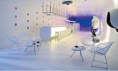 位于秘鲁首都利马的El Tubo酒吧,其设计者为Felipe Assadi和Francisca Pulido夫妇。全乳白色的色调给人一种纯洁之感,身在此处,仿佛让人超越时空。彩色炫窗的点缀带来了一丝灵动之美。天花板上悬挂的投影仪则是为了营造一种幻想、现代的环境