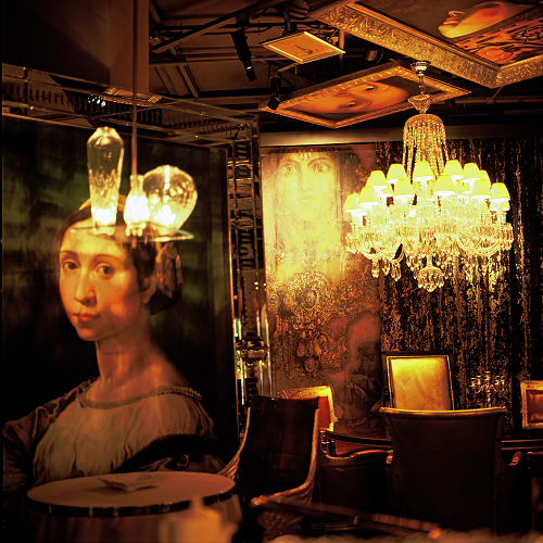 在酒吧及生蚝吧又是另一个视觉的高潮。紫色水晶的古典吊灯,设计师的现代高凳,欧洲宫殿大厅的配置,当代 Boutique Hotel里最Chic 的质感在同一个空间里出现。是伦敦、巴黎,还是迈阿密、洛杉矶?震撼力是来自时空交错的虚幻,是来自当代对过去重新的诠释。