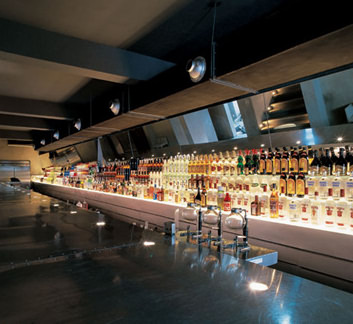 根据我对上海史的了解,外滩的东风饭店里有一个长约 34米的吧台。它建于1861年,在这栋建筑还被称为“上海总会”的时候,就是上海最长的吧台了。既然它已不是NO.1的了,那就索性放弃“机翼吧台”的话题。因为这里最绚丽的是灯光。玻璃酒架上发出荧荧的光亮,把每个瓶子照得晶莹剔透。形状相似的容器,因为标签和液体的色彩不同而产生错落的效果。泛着红晕的白色,近似琥珀的黄,还有如玉般的绿,丰富多变的感觉比那白日里无人喝彩的吧台着实有趣的多。