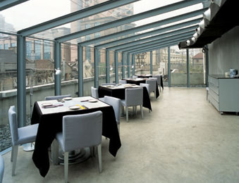 钢筋支架、金属摇窗,连空调口也是几排暴露在外的金属眼。萤七就像是活生生用金属在人世间隔离出来的。偌大的空间省去了所有的阻隔,空旷得像一个仓库,阳光在其间畅通无阻地游荡。白天,烛光和灯光都无法表现它的幽默感,因此“萤火大堂”的商业主题也就相应失去了意义。其实,既然是人间,那就应该接受昼夜更替的事实,白天不懂夜的黑,黑夜倒是可以领略一下人间的白皙。