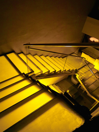 人间萤七是设计师三浦荣和大家开的又一个玩笑。水泥外墙上除了805的门牌号外没有任何一个LOGO,宽大的台阶尽头有几个亮着光的圆孔。