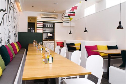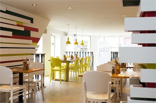 Olive & Earth餐厅位于英国的伦敦,由Lifeforms建筑工作室提供设计。Lifeforms设计了这样一个1800平方呎的餐厅,使用现代的材料和明亮的色彩作为餐厅的调色板,以兼收并蓄思想来表现出地中海在内的地区的一种传统本质。通过上下两个楼层,巧妙而紧凑的用地空间规划。定制的餐台和台座位旨在最大限度地展示在有限空间里,并配以开放式厨房让每一位觅食者都能享受视觉和味觉的双重享受。