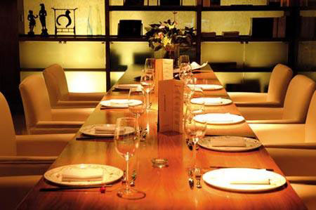 东方广场平台层的“天空大道”,名字颇有些让人浮想联翩的意境,推开旁侧一扇暗色、内敛的大门,进入“寒舍”,本来朦胧的意境便似乎朗然于目了:阔大的玻璃天穹,中央一方平静的水池,线条方正的素色沙发与胡桃木色餐桌一起,沿水而立,疏疏朗朗,安宁雅致。这是一间很有气度的餐厅,简约的风格和宽敞的席距都让人身心舒适。