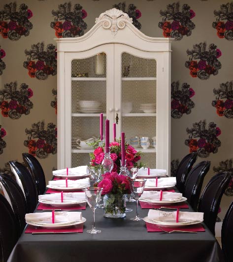 搭配亮点:白色的橱柜与餐具让人首先联想到伴随圣诞节的皑皑白雪,于无形中点出圣诞主题;布满花纹的墙壁,粉红色的餐垫上映衬着白色餐具,而桌面上摆设的鲜花与蜡烛都是统一的粉红色系。这是主人精心设计的浪漫烛光晚餐。用鲜花作陪衬,选择粉红而非大红,更是在浪漫中更显明净的素雅格调。