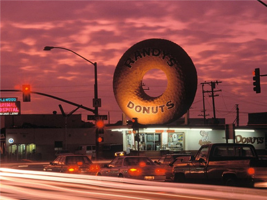 在兰迪的屋顶上竖着一个超大的甜甜圈,这已然成为加州风景的一个标志,而且经常在电影中出现。最近,在影片《钢铁侠2》中,我们又看到了兰迪甜甜圈的身影。