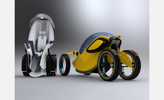这里有一款车,车身极小,速度极快,而且让你不必多虑安全问题。皮埃尔·雅赫音为所有要求车身紧凑、电力驱动的环保主义者设计了该车。前轮固定,后尾轮提供转向力,有点类似驾驶摩托艇。