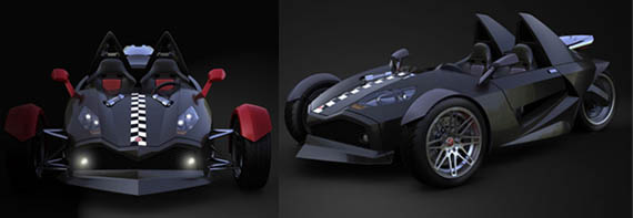 Dan Bailey是这款车的设计师。有人善意地指出,“速度跑车”这款车的设计理念来自外星人电影,我们同意这种观点。这款车基于川崎忍者摩托车,有雄厚的基础,但外观设计上很有威慑力,而且很有光滑流线型。能否投入生产不好说,但是我们希望它能问世,不为别的,就因为它凶悍的模样!