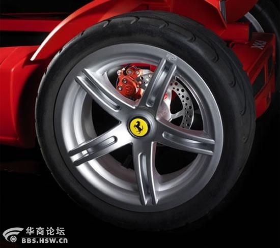 看来法拉利的产品已经超越了豪华车的概念,特别是他们居然为孩子提供一辆能够真正进行驾驶的“玩具”汽车。这个著名的跑车制造商刚刚发布了一辆Ferrari FXX Racers pedal Go-Kart。这辆车拥有43cm的加宽超平滑X-treme轮胎,令人吃惊地采用了后轮碟刹,车里有7个啮合齿轮,还装备有电子系统用来对车速和圈时进行监控。