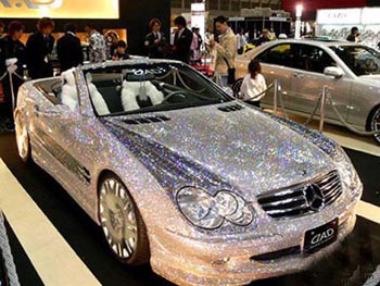 国外某次汽车展上的奢侈品,没有确切的消息,这辆车使用的是否是真的钻石,但看它耀眼的样子,不是真的也够拉风了。