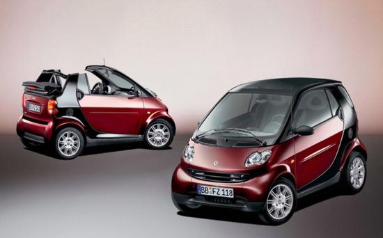 1994年,Smart成为斯沃琪与奔驰的一个合作项目。这种新车型旨在解决交通拥堵和污染问题并且是以一种有趣而适应都市环境的方式。Smart的钢结构车身构架非常坚固而安全,塑料车体外板可回收、可替换。它可以搭载两名乘客,能够提供令人满意的舒适性和便利性,其操作的灵活性不亚于其他轿车。与Mini一样,Smart的设计师也认为小型车设计没有必要以牺牲驾驶快感为代价。