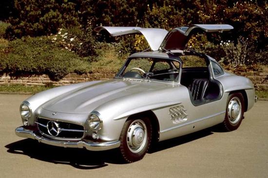 在设计和制造一款先进汽车时,没有哪一款汽车能够像奔驰300SL(SL是超轻的英文首字母缩写)一样最能体现德国人成为汽车制造领域的“超人”的渴望。1952年,奔驰300SL双门跑车初战勒芒24小时耐力赛并最终夺取桂冠。美国进口商深信他们能够在北美销售1000辆公路版奔驰300SL,此后,这款汽车开始批量生产。