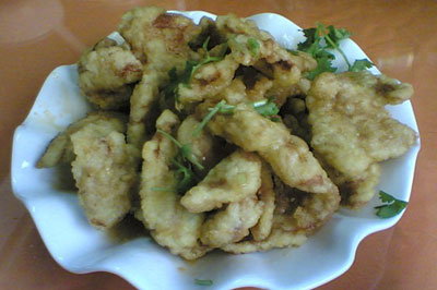 吃法跟火锅差不多,先挑鱼称鱼,每个桌子上有个大锅,然后专门的汤料和鱼下锅,一般要等20分钟,里面再加上自己点的配菜,配菜和外面的火锅差不多,素的品种多一点,也有冷菜,可以点一些打发等的时间。马哈鱼非常非常鲜,肉质很好,外面有一点点老,里面非常嫩,不能煮太多时间,不然里面也会老的。那里的玉米饼也很有特色,是现做的,把玉米糊捏成一个个小饼,然后就贴在鱼锅上直接烘,鱼熟了,饼也好了,很香,沾着鱼汤吃,很特别。