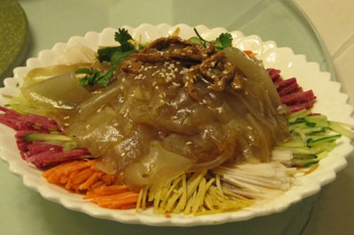 这家店很多人很喜欢他们窗台的点缀,一只只形态各异的小狗模型可爱极了!不过最重要还是菜的口味,要推荐东北大拉皮,非常地道的东北味儿!拉皮浇汁口味十足,蒜香、醋香、肉丝的香味恰到好处的把味蕾唤醒,再配上切得非常精细的甘蓝丝、黄瓜丝等素菜,异常爽口,是道非常棒的开胃菜!