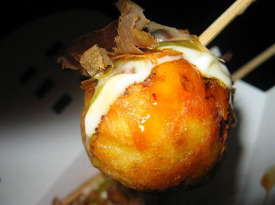 这里最好吃的是小丸子,18元、20元一盒两种价位,区别在葱花,虽然价钱不菲,但小丸子的质量决不是能和路边三五元的比的,小丸子的个头和里面的章鱼块都很大,配上木鱼花和酱很好吃。不想吃小丸子还可以买串鱿鱼,15元,鱿鱼炸得很脆,味道很入味。