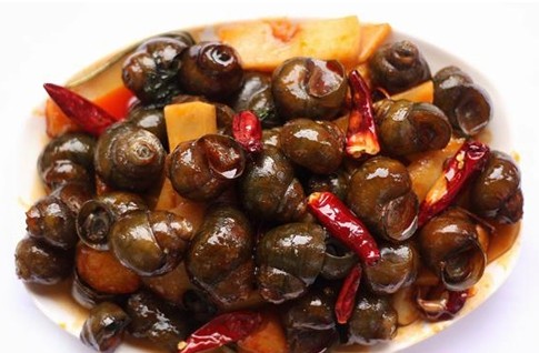上海市的糟田螺是著名的特色风味小吃。这种小吃是用个大肥美、肉头厚实的安徽屯溪产的龙眼田螺为原料,进店后先用清水养两天,使其吐净泥沙,然后再放入锅内,加上茴香、桂皮等煮较长时间。最后将烧好的田螺放上陈年香糟,糟制而成。这种糟田螺呈褐灰色,肉质鲜嫩,汁卤醇厚,入口鲜美,十分受人欢迎。此美食是上海五味斋点心店和鲜得来点心店的著名特色风味小吃。
