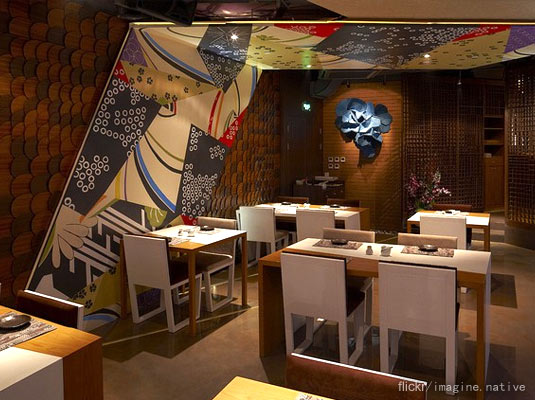 这家装修偏日式庭院风格的日料店,最大特点就是炉端烧,一种起源于日本仙台的烧烤方式。长方形烧烤台的位置是整间餐厅的最佳赏味点,当食物在900℃的炉火中烧烤而成时,大厨一声大喝后举着一枚船桨,直接将你的食物递到面前,让你在一片热火朝天的喧哗声中慢慢享用,这也正是享用炉端烧的最妙趣之所在。