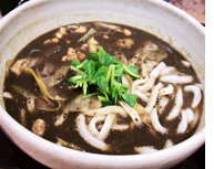 黑芝麻咖喱乌冬面是店里的人气招牌面,面条Q弹有嚼劲,鸡腿肉和洋葱的配混合着淡淡咖喱味,再与芝麻味的汤底巧妙融合,创意十足。 |