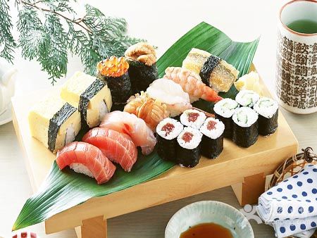 寿司是日本人最喜爱的传统食物之一,主要材料是用醋调味过的冷饭,再加上鱼肉,海鲜,蔬菜或鸡蛋等作配料,其味道鲜美,很受日本民众的喜爱。