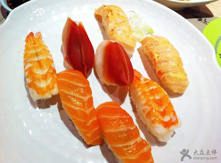网友点评:味道比较好,各种各样的寿司都有,我比较喜欢吃的是三文鱼寿司,每次来都会点这个寿司。虽然每次来都要等一个小时不到,但是为了大口大口吃寿司的满足感就忍啦。