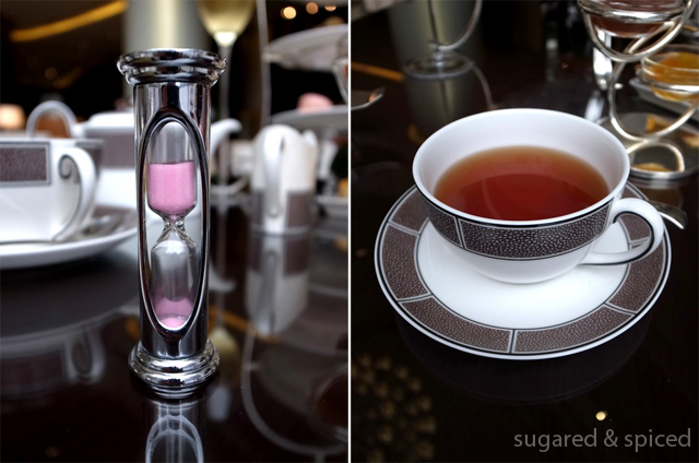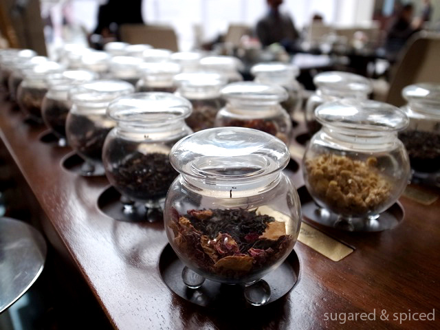 這裡提供了很多不同種類的茶給客人選擇,一罐罐的茶葉瓶子讓我想起了台北的人氣茶店Smith & Hsu。聞了半天也不知所雲,結果在侍者的推薦下我們選擇了朗庭特選 (The Langham Blend) 和異國棕櫚 (Palm Court Exotic Blend)。