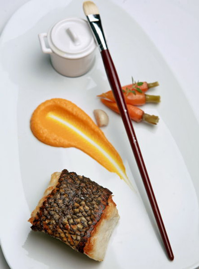 再试羊排厚切,没有半点膻味,这种新鲜的肉体叫羊肉控欲罢不能。另一道主食鳕鱼,汁是五香味,厨师将本地调料融入西餐的做法中——这已是上海西餐的一种新风格,而上来的这道菜,甚至配了支毛笔让客人自己来刷汁,有点意思。吃下来,鱼皮可以更脆些,要那种一刀下去即成两段的效果,鱼肉虽然没到每一丝都在嘴里鲜活流汁的地步,却也如百合一样片片成形,属最近吃过的上品。待甜品上桌,早已没有半点位置给它,可看在那印有餐厅名的木盒面上,终究也把芝士蛋糕和水果雪葩吞下了肚。