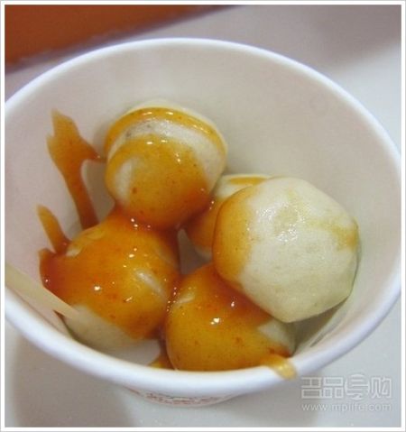 地铁10号线出来就可以看见了,很小的一家店,里面的服务员也不多,有烤牛肉丸子和鱼丸,还有那种放在煮的丸子,要了一份烤牛肉丸,里面加了点番茄酱,沾着吃,丸子很Q,弹性很足,牛肉丸中有汤汁,吃起来很鲜,还要了一份韩国年糕,年糕很糯,吃口很好。