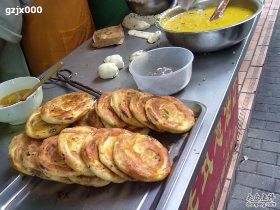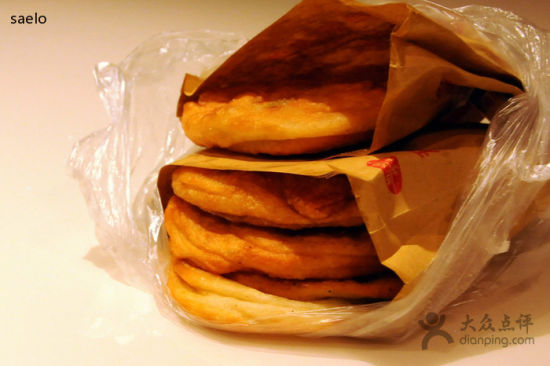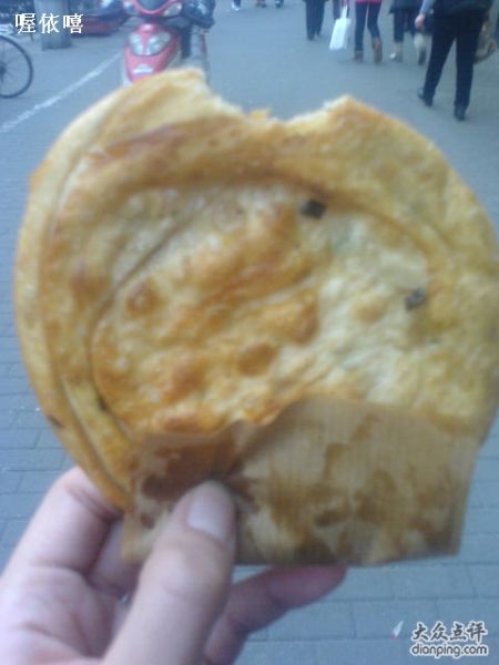 推荐理由:这家葱油饼开了好多年了,口味还不错,很薄很脆,肉末和葱也放的恰到好处,用黄黄的纸袋子一兜,口水禁不住的流呀,这家店每次去都有人在排队,生意真好啊。