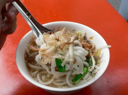 米苔目是传统的台湾美食,从外形上看和桂林米粉形状差不多,不过口感的Q弹和嚼劲上,要甩桂林米粉好几条马路;加入了高汤的米苔目,有股子香烹烹的猪油味,入口真是味道好极了。