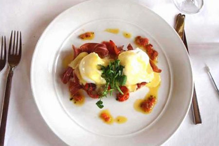 陆唯轩的鸡蛋功夫做到了出神入化的地步,菜单上仅鸡蛋的品种有五种之多,这在上海是罕见的。有一款圣戴尼奥火腿拌扒甜椒,做得很精巧细致,配以不同的口味融合不同的调料,入口即化,很有淑女的感觉。