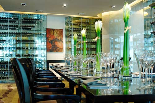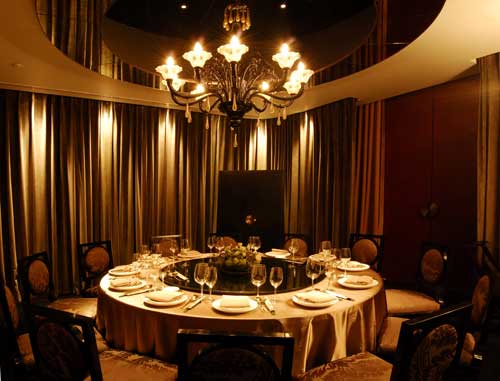 位于南京西路和西康路交界处的“琳怡”餐厅,是在静安体育馆的部分基础上改建而成的。层高,空间开阔。进门处就是两排落地酒柜,不仅各国佳酿尽藏,还有LYNN自家品牌的高级红酒。橘红色的巨幅壁画占据满墙,令人在入座的同时感受身心温暖。雅致的古董家私和秀丽插花烘托出低调而奢华的氛围。半封闭式的包房,既能让人享受餐厅的优雅环境,又能保证一定的私密性。