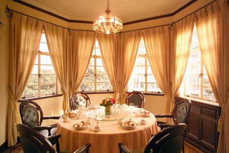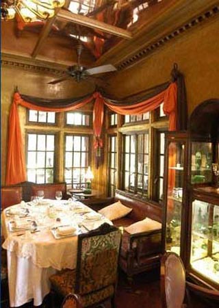 这里应该是最适合商务宴请的地方,大门两侧有一大片草坪,餐前可在此散步。洋房的一楼客厅布置得很有怀旧气息,给人一种温情脉脉的感觉。内分三楼,有不少特别的包房,都是按照老上海的风味进行布置,透出高雅情调。