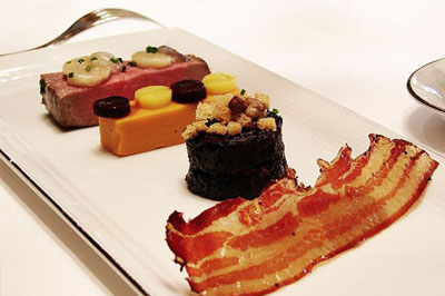 外滩3号的顶级中餐厅。装潢古朴雅致,与周围的万国建筑群遥相呼应。坐在靠窗的位子,外滩弧线完美呈现。出品的本帮菜加上了创意,无论上菜顺序还是摆盘都颇为西化。有幸尝到熏鱼,确实不错;葱烤银鳕鱼肉质鲜嫩;芥末酱炸虾球超大颗,很有满足感。