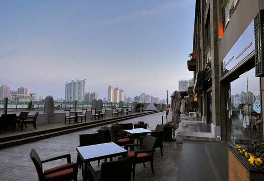 半岛酒店顶层13楼的艾利爵士餐厅也是外滩很有代表性的露台景观餐厅,景观包间尤其受欢迎,这里经营的是高级法式欧陆菜,中西结合的装修,设计独特。宽敞的露台能够直接饱览浦江两岸壮丽美景,视野极为宽阔,让人心旷神怡。米其林星级法国大厨带来丰盛的佳肴的同时,餐厅还有装饰风格十足的鸡尾酒廊,提供各类高级酒品,站在露台,伴随着轻柔的音乐和可口的美点佳酿,极其浪漫。