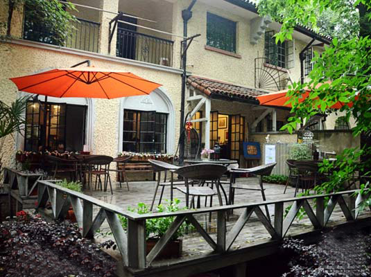 El Patio坐落在太原路汾阳路街角庭院内的一栋三层老洋房里,室内仍保留了原有的古典气息,有一种低调的奢华感,经营的是西班牙菜,也可以尝试新兴的分子料理。 The Bubbles Bar的露台环境特别惬意。