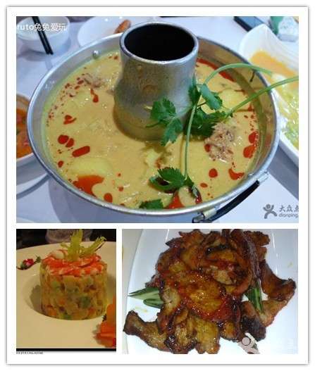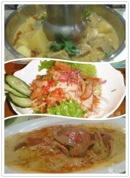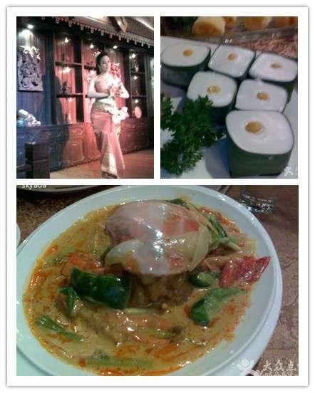 吃泰国菜的“首选”。餐厅的装饰、桌椅都是“以木雕制成”,“很有泰国特色”。掌勺的是“泰国厨师”,菜品“比较地道”。菠萝饭选用“正宗”泰国大米, “不腻不硬”,口感“刚刚好”;咖喱皇炒蟹“赞得不得了”,“满满”一大盘,蟹膏“足”,咖喱拌饭“正好”;椰汁西米糕“每次必点”,椰奶“香醇浓郁”, “清爽可口”。最特别的是,晚市可以欣赏到泰国美眉“婀娜”的舞蹈表演,很欢乐。价格略高,有机会还会再光顾。