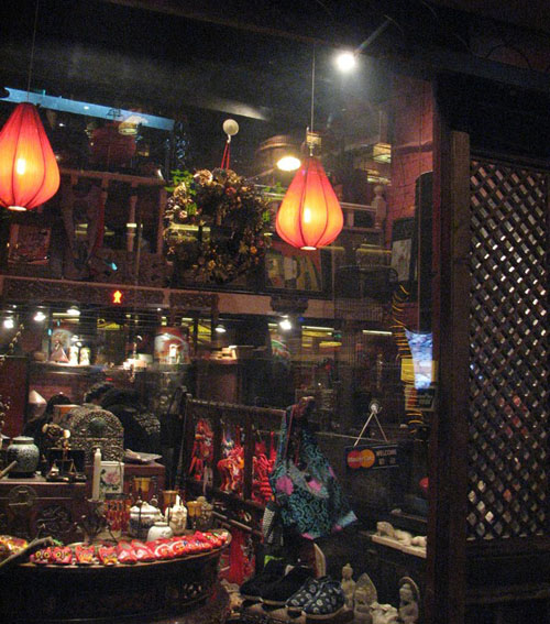 店名:金粉饰衣 地址:巨鹿路614号 特色:古代桌子、椅子、摆设品、小饰品 紧挨着“一甸之家”,旁边有一个叫“金粉饰衣”,给我有种回到古代时期的那种的那种格调,推开门一看,真的有很多中国情的东西。 这张是在门缝里偷拍的