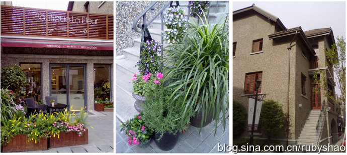 思南公馆,其实是老洋房改建而成的一片商业区,档次可参考新天地,也许更显低调的奢华,如果你必须要在新天地和思南公馆之间选择,如果你如我一样更偏好恬静的时光,那么我可以替你选思南公馆哦,没有太多的人来人往,一杯咖啡,或者一杯啤酒,可以让你在喧嚣中找到那一份宁静。下图是看上去很赞的一个花艺店,手机的白平衡差得不能看,店里一个法国MM在摆弄花草,那个羡慕妒忌恨啊,就不消言表了。