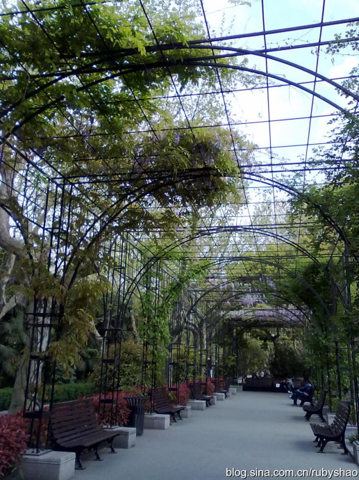复兴公园,是我在上海的这么多时间里第二次去。白天的复兴公园,又是别样的风景,法式规整的景观花圃和紫藤铁廊架,让人驻目。老人们在高大的法国梧桐下跳着轻快的华尔兹,愉快的旋律,流连~~芍药花盛,花瓣薄如纸翼,娇艳,果然是仅次于牡丹的花中贵妃。