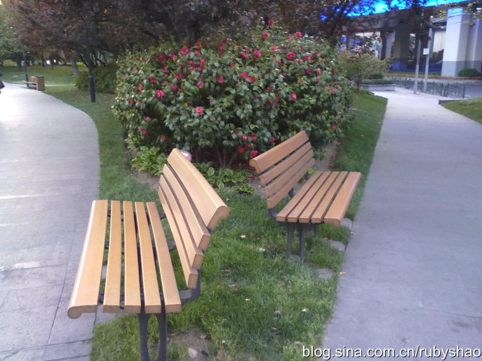 路过延中绿地,已是黄昏时光,鲜花盛开,一个中年人在池塘边喂着鹅,无意中看到的两张长椅,仿佛因赌气而背对着的两个人,很有趣味,可是用手机一拍,色调偏蓝,什么意境都不再有了,再次感叹眼睛的强大。哥哥笑话我说,我们再加把油,就能把上海所有的大绿地都走遍了。恩,别让我推荐游程,否则没有绿地我真的会成为很不合格的陪游啊。