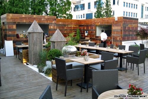 户外情况:The Apartment顶层的露台可以坐75人,上面有一个小酒吧,还有个小巧玲珑的厨房。